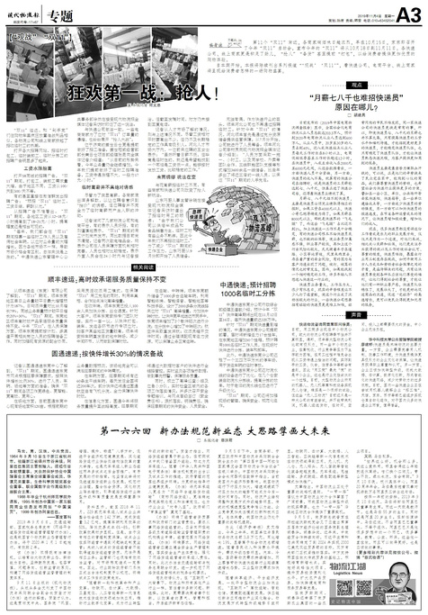 快递物流咨询网首席顾问徐勇:目前,用工荒多出现在中小物流公司,较大的物流公司招聘季节性并不算明显。德...