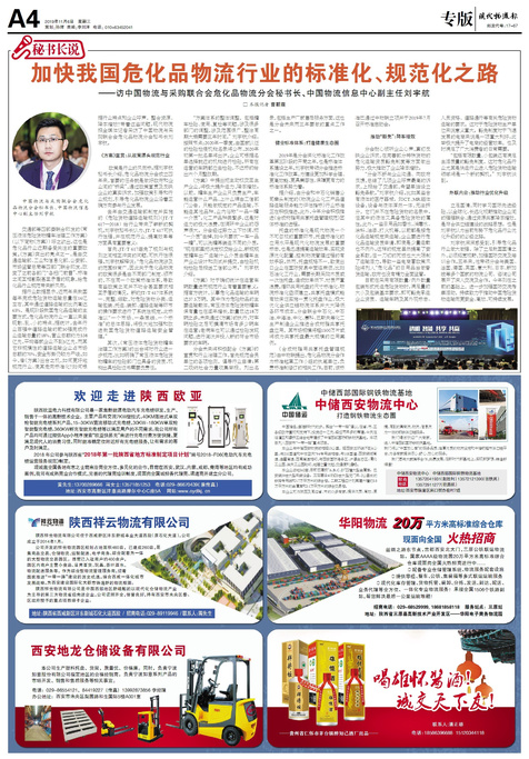 □本报记者曹朝霞 图:中国物流与采购联合会危化品物流分会秘书长、中国物流信息中心副主任刘宇航 ...