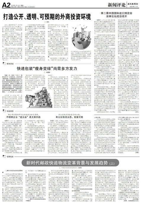 □ 张国栋 随着一年一度的 “‘双11’购物狂欢节”日益临近,快递包装“瘦身变绿”的话题再次引发关注。近日,...