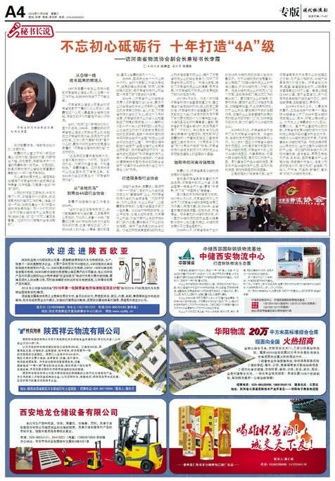 □本报记者赵振立 通讯员肖海丽 图 :河南省物流协会副会长兼秘书长李霞 采访李霞很难,难就难在...