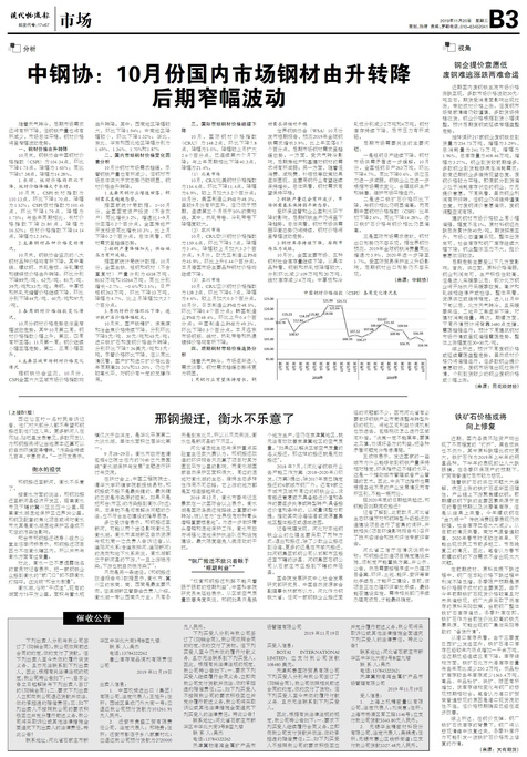 ■ 中钢协:10月份国内市场钢材由升转降后期窄幅波动