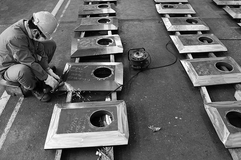 本报讯 (特约记者杨木军摄影报道)近日,由江苏大明金属制品有限公司机加工事业部承揽一批新加坡港机业务,为其加工的平衡梁正在紧张进行中。