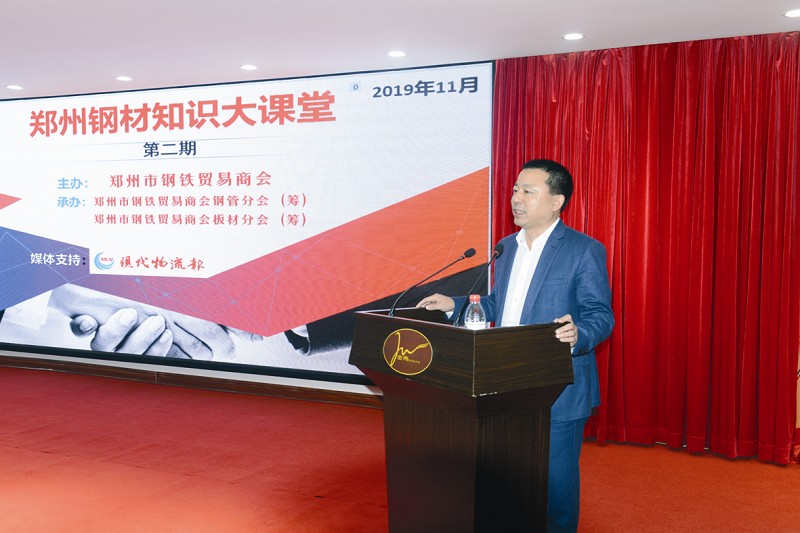 11月20下午,主题为“钢材市场的未来方向”的郑州钢材知识大课堂(第二期)正式开讲。活动由河南展利不锈钢总经理、原359旅老兵侯闪主持,郑州市钢贸商会主办,旗下的钢管分会(筹)和板材分会(筹)承办,现代物流报为本次活动的媒体支持单位。