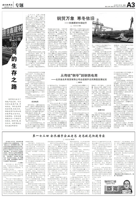 □ 董瑞强 乔忠民在传统钢贸行业已经摸爬滚打19年了,可以称得上是业内的一名老兵。现在他不仅是北京吉兆...