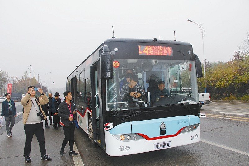本次亮相的另一款体验车型为重汽10.5米纯电动自动驾驶公交车,该车是中国重汽依托多年的技术底蕴倾力打造的自动驾驶纯电动城市客车,是自动驾驶技术在客车领域的首次应用。在特定驾驶模式下,由自动驾驶系统完成所有动态驾驶任务。