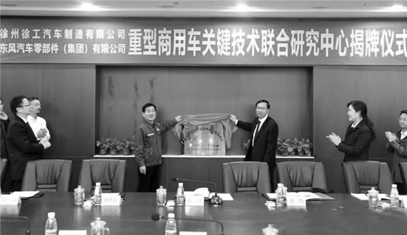 本报讯11月25日,徐工重卡与东风零部件集团共同打造的技术共享平台——重型商用车关键技术联合研究中心正式揭牌。东风零部件集团是中国最大的汽车零部件企业集团之一,为乘用车、商用车、新能源汽车提供系统化的零部件产品和技术解决方案的能力。自双方签订战略合作框架协议以来,一直保持着密切的沟通与技术交流,在操纵系统、底盘系统轻量化和电驱动系统等领域取得了新进展。