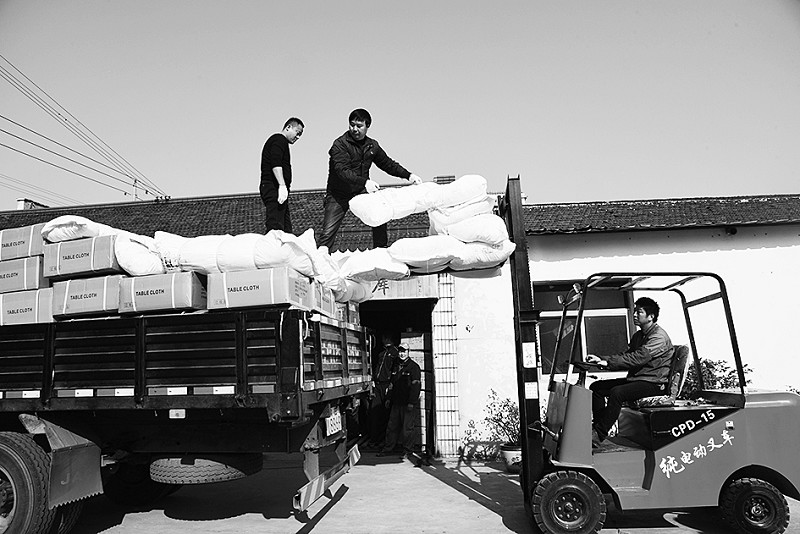 本报讯 (记者胡智慧通讯员慕继平摄影报道)12月5日,一箱箱“金姿台布”从马鞍山市博望区装车外销,经上海港“飞”往日本。