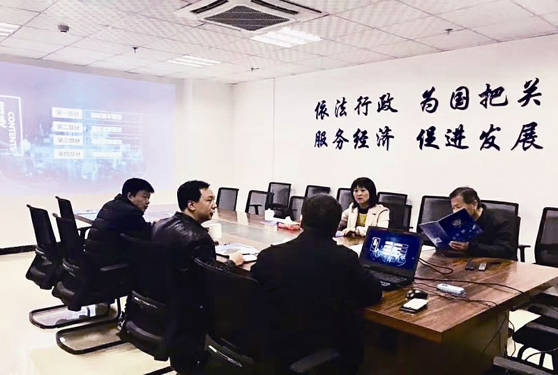 实地调研后,在园区召开了业务座谈会。洛阳五洲跨境电商产业园总经理叶强分别汇报了通关平台运营、产业园发展现状以及园区未来规划发展等情况。