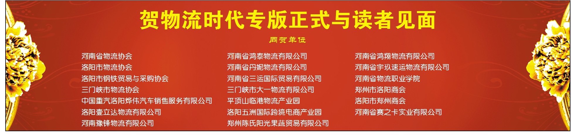 河南省物流协会洛阳市物流协会洛阳市钢铁贸易与采购协会三门峡市物流协会中国重汽洛阳烨伟汽车销售服务有限公司洛阳壹立达物流有限公司河南豫锋物流有限公司河南省鸿泰物流有限公司河南省丹妮物流有限公司河南省三运国际贸易有限公司三门峡市大一物流有限公司平顶山临港物流产业园洛阳五洲国际跨境电商产业园郑州陈氏阳光果蔬贸易有限公司河南省鸿翔物流有限公司河南省宇玖速运物流有限公司河南省物流职业学院郑州市洛阳商会洛阳市郑州商会河南省赛之卡实业有限公司