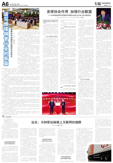 □本报记者李娜任宏 12月18日,以“促进焊管产业高质量发展”为主题的中国金属材料流通协会焊管分会成立大...