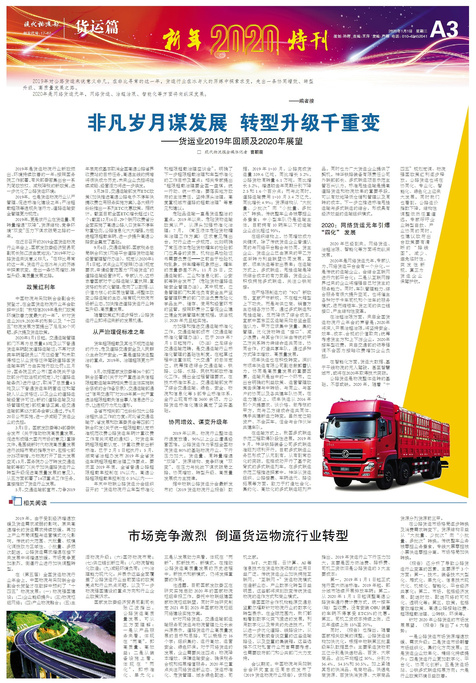 □ 现代物流报全媒体记者 曹朝霞 2019年对公路货运来说意义非凡。在非比寻常的这一年,货运行业在冰与火...