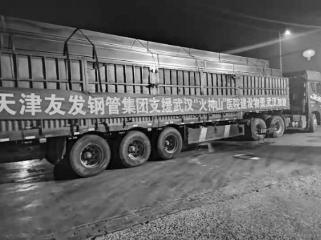 1月28日,天津市民营企业友发集团下属的邯郸友发公司又接到武汉火神山医院建设急需的方管采购订单,邯郸友发迅速组织车辆和人员装车发货,当天晚上10点,3车物资再次完成装车发往武汉。至此,友发集团下属的青岛九州、武汉新鑫方矩、泰安大德等众多友发经销商都积极投身到武汉火神山医院建设的材料供应保障工作之中。