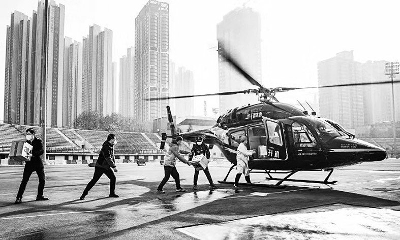 这是一次抗疫救援物资志愿联盟行动,是由西本新干线股份有限公司(简称“西本新干线”)联合多地政府、热心企业和爱人人士共同协调组织,由上海新空直升机有限公司(简称“新空直升机”)为此开辟紧急空运专线,并为急需医疗物资免费运输服务提供保障。这些“逆行者”,第一时间将最紧急、最稀缺医疗物资直接空运到前线医护人员手中,他们用自己生命为重点疫区提供了应急物流保障,有效挽救病人,与疫区人民同心抗“疫”。