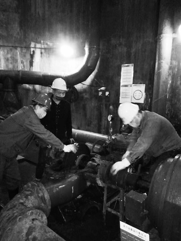 大年刚过没几天,重庆松藻公司打通地区就传来供水险情:公司所属白岩水源站取水点1号机水泵停机声音异常,如不及时维修,将直接导致公司所属金鸡岩、白岩、二矿、打通等地区停水,影响周边8000多名居民正常生活、生产用水需求。“我们的申请书就是我们的誓言和初心。”重庆松藻煤电建生公司设备管理站既是科长又是共产党员的刘洪接到指令后,立即带领抢修人员佩戴口罩并做好消毒工作后赶往现场。