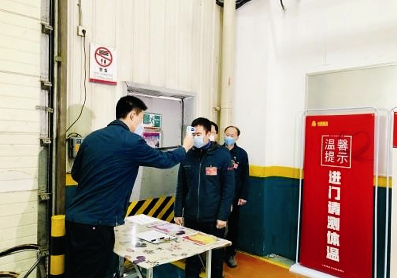 2月8日13时,记者驱车赶到地处高新区孙村的重汽济南桥箱有限公司,门口保安示意停车后,迅即上前对到访人员逐一测体温,并对车辆消毒,确保无异常后,记者一行被放行。来到驱动桥部生产车间,只见门口张贴着“万众一心众志成城坚决打赢疫情防控阻击战”的宣传语。推门踏入车间还未及移动,“您好,请测体温。”入口处的工作人员说。