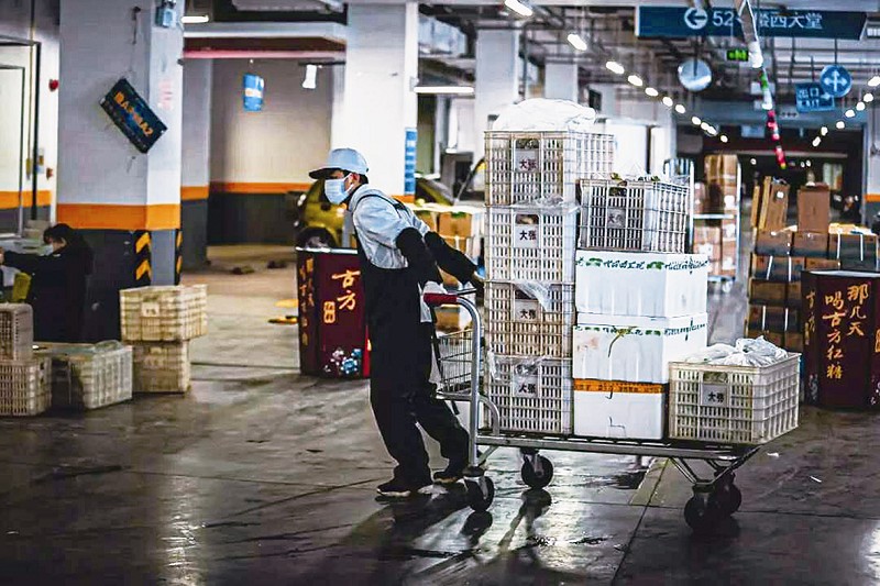 疫情撞上春节,本来就忙碌的员工更增加一份责任。每位员工都要身兼数职:超负荷货物的分拣、店内瓜果蔬菜等的打包、线上货物配送,店内自动补货系统失去了精准判断还要手工加减。