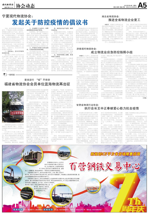 本报讯 1月27日,济南现代物流协会发出关于做好新型冠状病毒肺炎防控工作的紧急倡议,根据济南市口岸和物流...