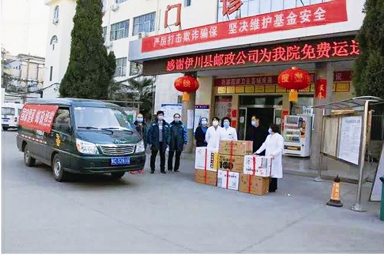 2月13日,伊川县分公司得知伊川县中医院需向武汉“前线”邮寄一批支援物资,第一时间与医院对接,提供免费寄递服务,组织揽收人员到中医院上门揽收,确保支援物资迅速发出。此次邮寄是为赶赴湖北、驰援抗疫一线的医护人员们送去的急需物品和防护物资。