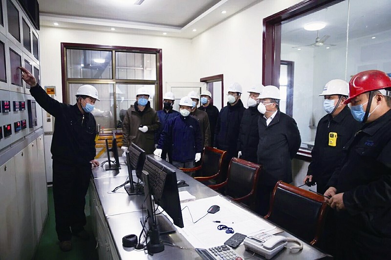 图为国际物流集团党委书记、董事长许登旺,党委副书记、副董事长、总经理王秀军在华瑞(邯郸)铸管公司现场检查指导疫情防控工作