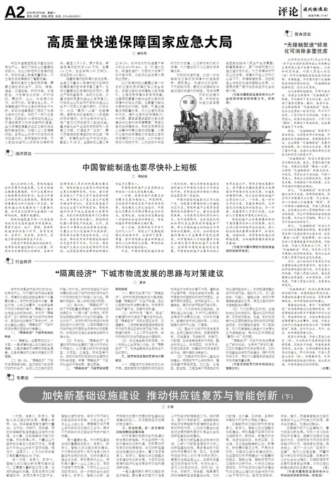 □ 魏际刚 邮政快递是国民经济基础性先导性产业,是现代服务业的重要组成部分。在此次新冠肺炎疫情防控中...