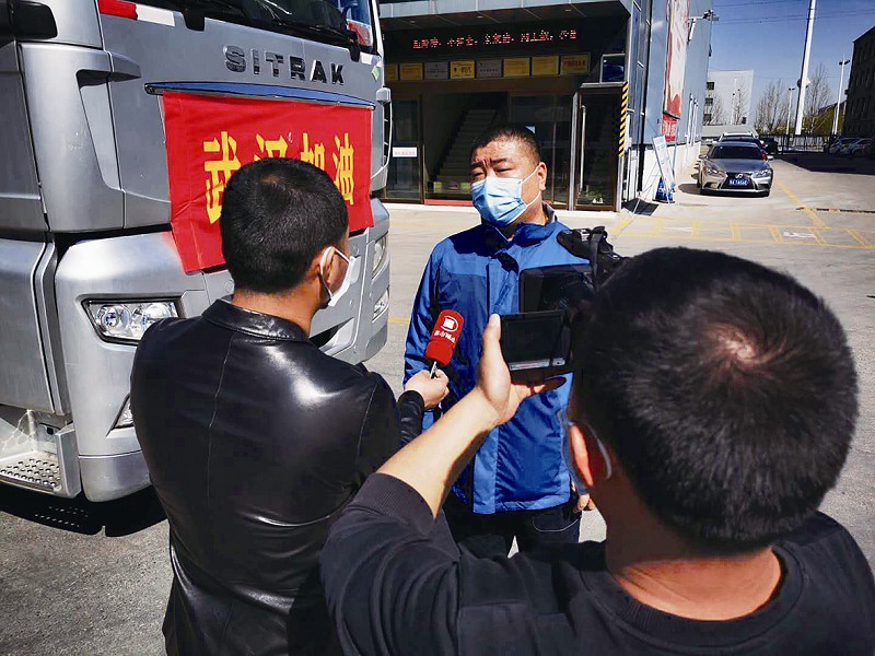 河南省物流协会副会长兼秘书长李霞也在现场接受记者采访时表示:新冠肺炎疫情防控阻击战打响以来,河南省物流企业积极响应党和政府的号召,第一时间参与到新冠肺炎疫情的防治工作中,河南鸿泰物流就是其中的佼佼者。他们多次免费运输防疫物资,驰援武汉,为打赢疫情攻坚战做出了突出贡献。今天凯旋的抗疫先锋李广磊师傅在此次疫情攻坚战中,不顾个人安危、多次往返抗疫一线,运送抗疫物资,这种知难而上的无私奉献精神是值得社会肯定和认可的,也是我们河南省物流协会弘扬正能量、发扬真善美的优秀典型。下一步河南省物流协会将继续挖掘在此次抗疫中涌现出的爱心企业及抗疫先锋,并予以通报表扬,号召全省物流企业向他们学习,为彻底打赢抗击新冠肺炎疫情阻击战做出物流企业应有的贡献。