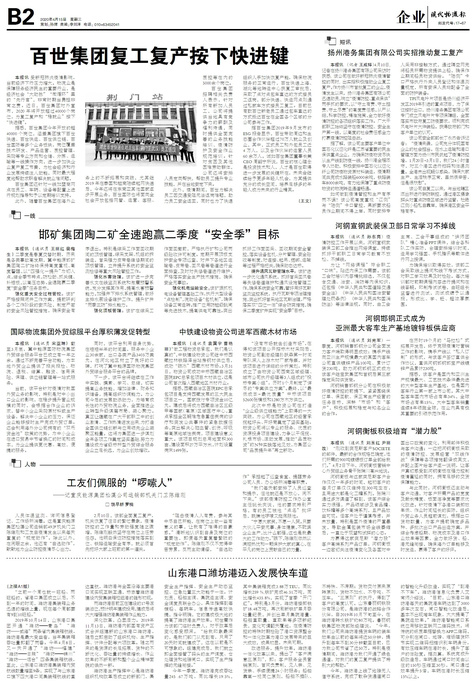 本报讯(记者王成祥)4月10日,记者在扬州港务集团有限公司采访时获悉,该公司在做好新冠肺炎疫情管控的同时,...
