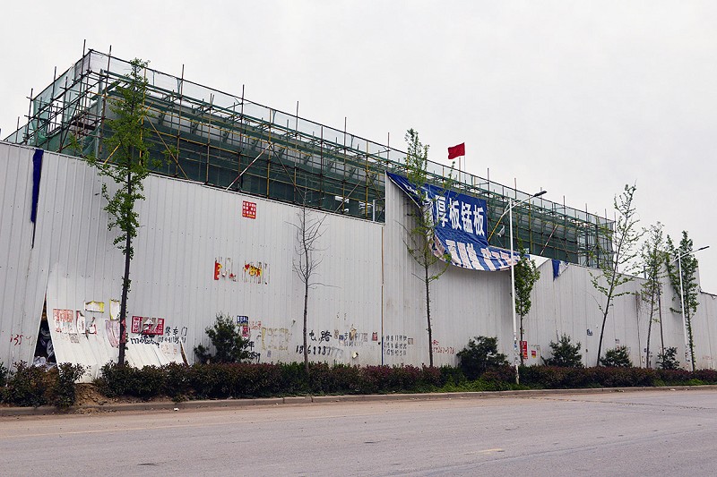 道路南侧的“中国建筑”的施工大院,偶尔有带着安全帽进出的工人,这里已经是某房地产公司的施工现场。不久的将来,天汇钢材市场将被不复存在,一个居民区将取而代之。