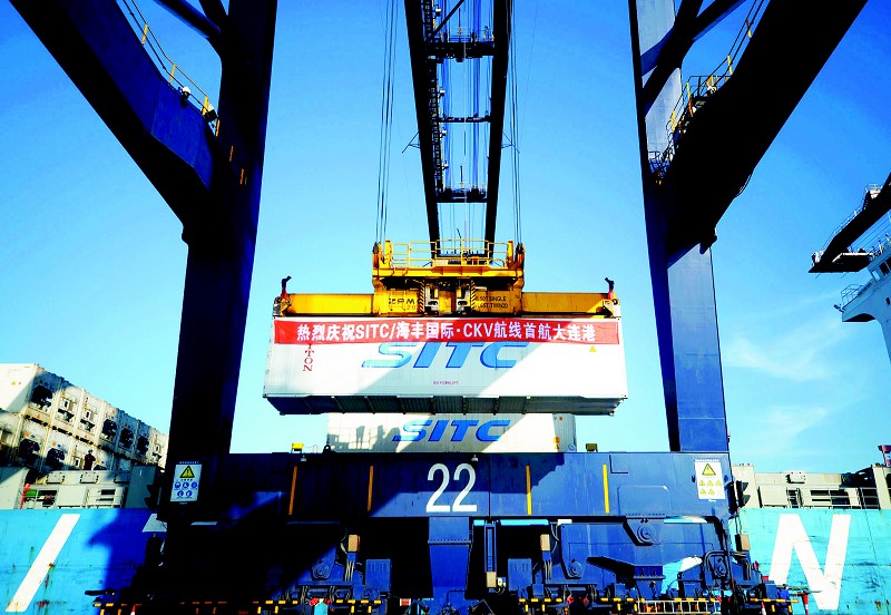 本报讯 5月5日,“海丰海南”轮在辽港集团大连集装箱码头靠泊作业,标志着海丰“大连-越南”航线在大连口岸开通。这是今年继达飞/德翔“大连-越泰”线、中远海运“大连-越南”线后,辽港集团开通的第3条东南亚集装箱班轮航线,至此,大连口岸东南亚集装箱航线增至16条。
