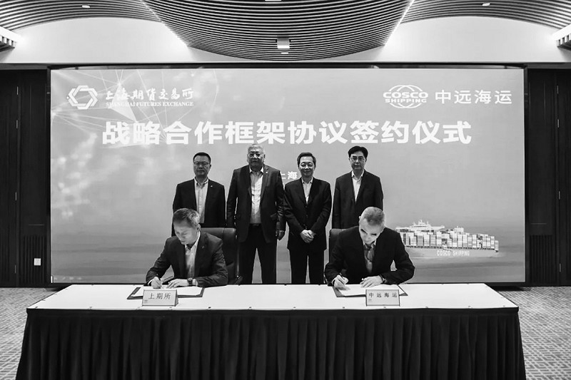 2020年5月14日,上海期货交易所(以下简称上期所)与中国远洋海运集团有限公司(以下简称中远海运)在上海签署战略合作框架协议,未来双方将在发展航运衍生品、推动期货市场国际化、做精做强期货交割仓储及综合物流服务等方面开展全面、深入、务实合作。上期所理事长姜岩、总经理王凤海,中远海运董事长许立荣、副总经理黄小文出席签约仪式,上期所副总经理陆丰、中远海运总经理助理韩骏代表双方签署合作协议。