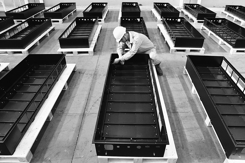 本报讯 (特约记者杨木军 摄影报道)近年来,江苏锡山区企业已承接多项新能源配套项目,产品广泛应用于电动巴士、港口AGV转运车、电动卡车、电厂储能设备、充电桩等车辆及储存装置,成为当地工业经济收入,除服务国内企业,产品还发往日本、新加坡、印尼、美国及欧洲多国。 图为江苏无锡市锡山区大明精工制造有限公司,工人正在赶制一批海外新能源项目订制260台电池箱。