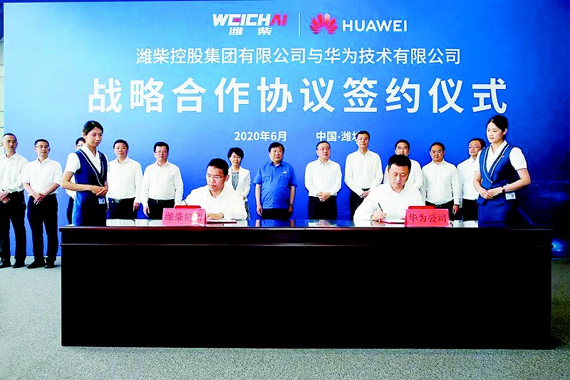 本报讯6月11日上午,潍柴集团与华为公司战略合作签约仪式在山东潍坊举行。华为公司董事、首席供应官姚福海,潍柴集团董事长谭旭光参加。 潍柴集团与华为公司有着良好的合作基础,根据合作协议,双方将发挥各自在产业领域的优势,在产业资源共享、数字化转型、创新型业务探索等领域开展深入合作,携手同行,共同成长。