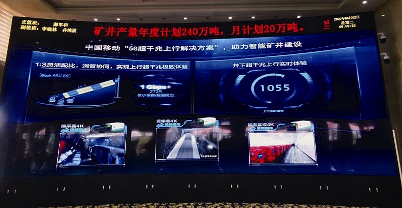 2020年5月27日,在阳煤集团新元公司总调度室,跟班队长郗书博在地下534米的井下现场,通过5G网络与井上进行视频通话,画面流畅,音质清晰。总调电子显示屏上,实时显示井下瓦斯浓度、温湿度和高清采煤场景。