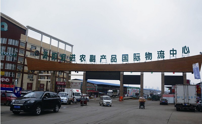虽然天空飘着细雨,但洛阳宏进农副产品物流中心里面依然是车水马龙,熙熙攘攘,一派繁忙的交易景象。