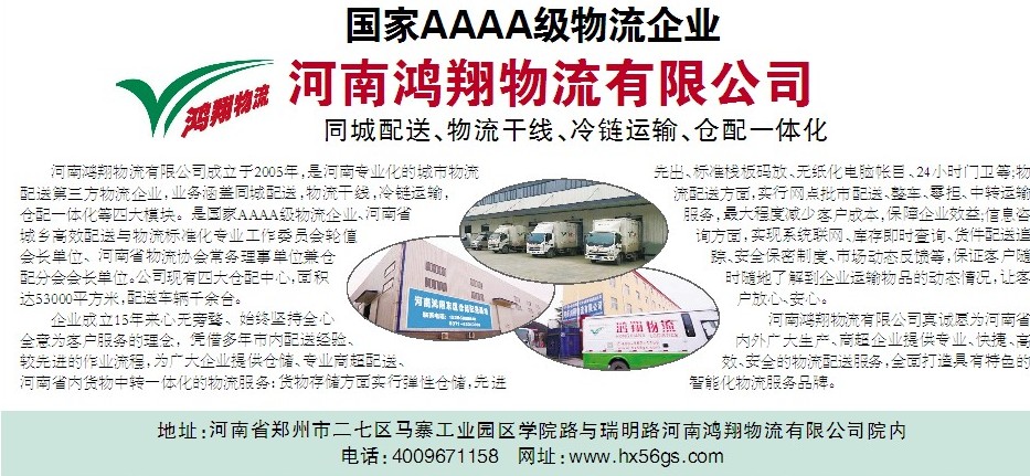 地址:河南省郑州市二七区马寨工业园区学院路与瑞明路河南鸿翔物流有限公司院内电话:4009671158   网址:www.hx56gs.com