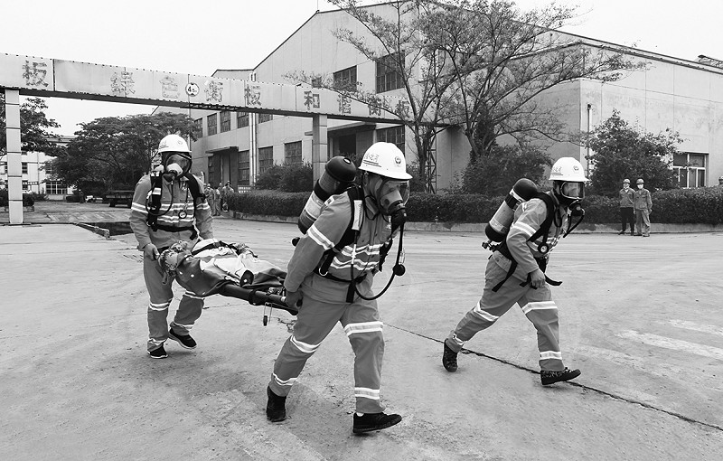 本报讯 (特约记者刘玉红)日前,河钢衡板组织开展了液氨泄漏综合应急演练。此次演练模拟河钢衡板液氨储罐区发生泄漏,随即启动一级应急响应,演练组人员进行紧张有序的抢险救援。 通过演练既检验了该公司应急救援队的反应能力,又使广大员工在充分学习消防安全知识、实地演练过程的同时,锻炼了快速处置突发事件的能力,大大提升了应急管理水平。 图为河钢衡板组织开展2020年液氨泄漏综合应急演练。