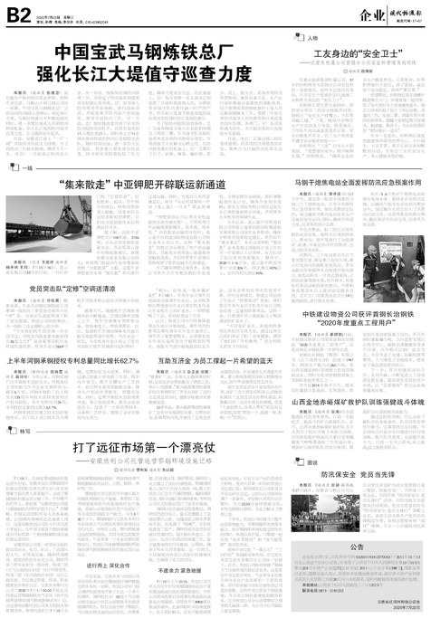 本报讯 (通讯员张维忠)面对越发严峻的防汛紧迫形势,按照中国宝武、马鞍山市和马钢公司统一部署,中国宝...