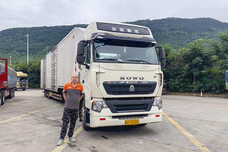 由新峰驾驶的是440马力中国重汽豪沃T7H燃气牵引车,车辆是今年5月公司统一订购的,刚开了一个多月时间。这是由新峰第一次接触中国重汽品牌的重卡,驾驶体验不错。“之前我开的都是燃油车,第一次开燃气车,最大的感受是干净、省心。现在省界、收费站经常会检查环保,之前驾驶燃油车,经常会因为环保检查耽误不少的运输时间,自从换了国六燃气车后,很顺利就通过了。”由新峰表示,从西安向南需要先翻过秦岭,然后陆陆续续还有20多公里的上坡路段及20多公里的下坡路段,“440马力的豪沃T7H燃气牵引车可以轻松驾驭,丝毫不用担心动力的不足而影响运输效率。”