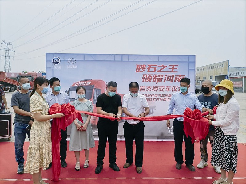 日前,在洛阳铎骏汽车销售有限公司门前的广场上,彩旗飘扬,鞭炮齐鸣,正面的主席台上是一幅巨大的彩色喷绘。上面一台红岩牵引车正在高速公路上奔驰。旁边是“砂石之王领耀河南——洛阳佳荣汽车运输有限公司红岩杰狮车交车仪式”两行苍劲有力的红色大字。十台披红挂彩的红岩牵引车气宇轩昂地分列在主席台两边,仿佛十位整装待发、即将奔赴战场的勇士。洛阳铎骏汽车销售有限公司与洛阳佳荣汽车运输有限公司10台红岩杰狮牵引车交车仪式正在这里隆重举行。