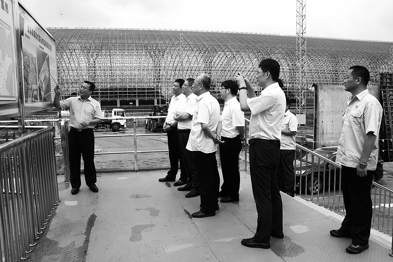 山东省能源局调研组一行到达济矿物流后,在林卫国的引导下,先后参观了无人值守磅房、煤炭储煤场、万吨煤仓、智能火车清车机、卸车机房以及港口码头。在港口作业区,林卫国向各位领导介绍了山东京杭多式联运物流项目的建设背景、区位优势、经营优势以及目前建设现状等。