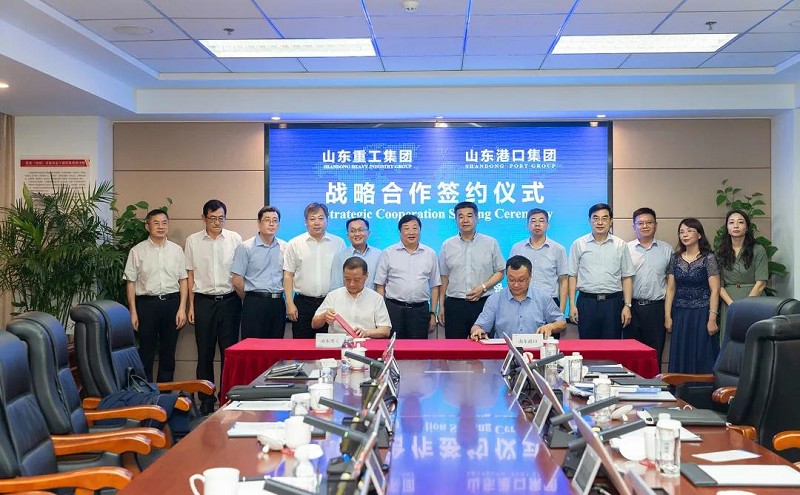 本报讯8月11日下午,山东重工集团有限公司与山东省港口集团有限公司签署战略合作协议。山东省港口集团党委书记、董事长霍高原,山东重工集团党委书记、董事长谭旭光出席签约仪式。