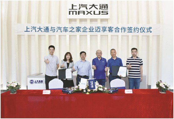 8月13日,在上汽大通总经理王瑞、汽车之家总裁邵海峰、上汽大通副总经理华瑾、汽车之家华中大区总经理赵波等相关领导的见证下,上汽大通MAXUS与汽车之家正式宣布于汽车新零售领域展开合作,将基于汽车之家在线平台生态,联合平安保险的雄厚资源,结合上汽大通迈享客数字化体系与营销赋能工具形成汽车业内首创的零售新模式,为用户带来全新价值体验。由此,上汽大通迈享客平台的业务模式由此前的个人迈享客入驻并推广上汽大通MAXUS新零售产品为主,战略升级到与B端各行业强强联手,进一步拓宽了模式边界,带来更多想象空间。上汽大通MAXUS将与汽车之家携手并进,创设汽车新零售模式,让新时代背景下的汽车线上新零售真正得以实现。