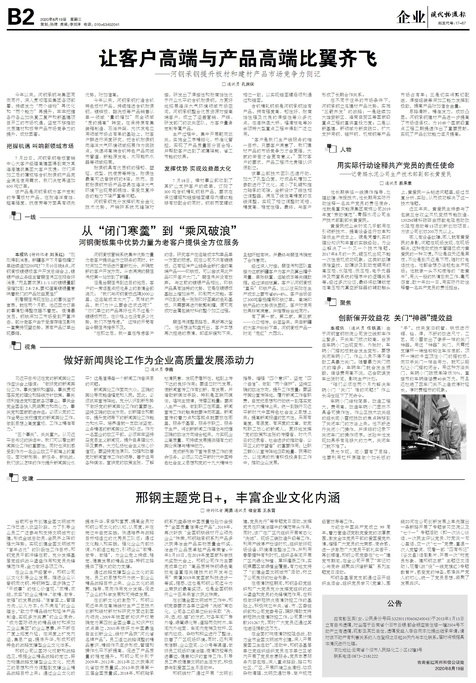 □通讯员孔庆保 今年以来,河钢承钢与集团同向同行,深入贯彻落实集团各项部署,持续发力“两个结构”再优...