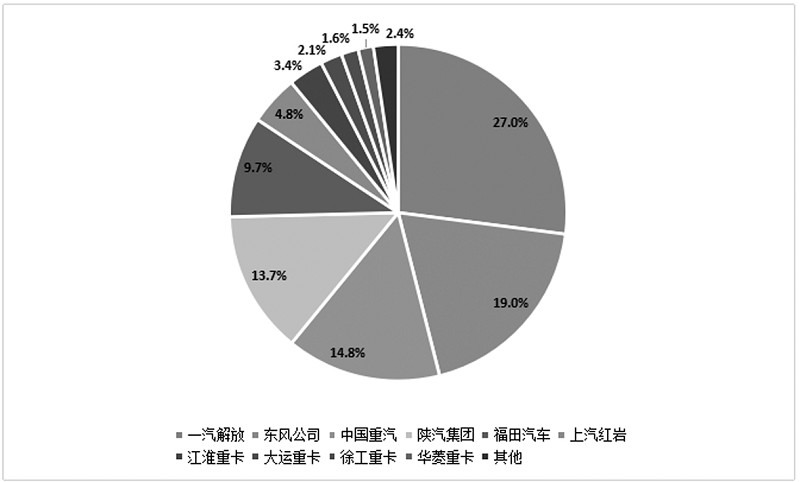 今年8月份,国内重卡销量前五强企业依次是:一汽解放(2.76万辆)、东风公司(2.7万辆)、中国重汽(2万辆)、陕汽集团(1.9万辆)、福田汽车(1.23万辆)。这五家车企合计销售约10.59万辆,占到8月份重卡市场总销量(12.8万辆)的82.7%,比去年同期提升1.2个百分点。