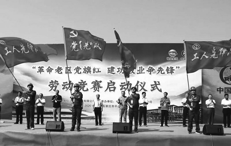 2020年9月6日,敬业铁路专用线施工现场,彩旗招展,铁路建设者劳动竞赛庄严的宣誓声响彻革命老区河北石家庄市平山县敬业集团上空。敬业钢铁有限公司与中铁电气化局、中铁六局、中铁一院在敬业集团铁路专用线敬业工业站联合举办的“革命老区党旗红 建功敬业争先锋”劳动竞赛活动正式启动。