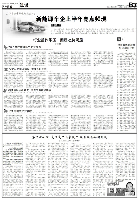 编 者 按 日前,国内上市车企陆续发布了2020年上半年财报,因受疫情影响,车企财报普遍表现不理想,但其...