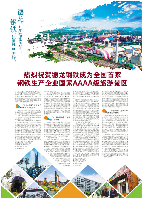 日前,德龙钢铁文化园顺利通过河北省文化和旅游厅公示,成为全国首家在产钢铁企业国家AAAA级旅游景区。