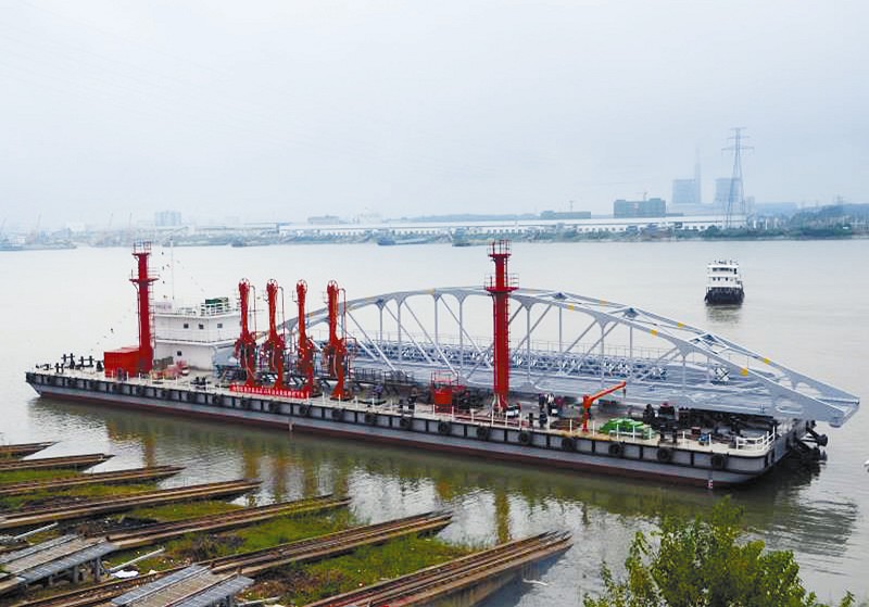 本报讯 (特约记者 胡富君 通讯员 胡兰 摄影报道)9月21日上午10时18分, 在湘江望城水域,由湖南湘船重工有限公司(长沙船舶厂) 打造最大的化工趸船顺利下水。“中韩石化10号泊位趸船下水,再创湖南最大化工趸船建造的纪录,专供危化船舶装卸靠泊。”湖南湘船重工有限公司董事长王勇介绍。