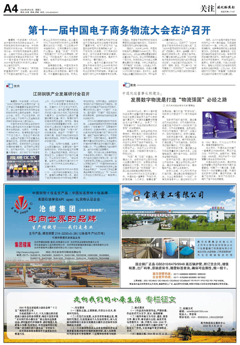 本报讯(记者王京)9月24日,“2020江阴钢铁产业发展研讨会”在江苏省江阴黄嘉喜来登酒店顺利召开,会议由中...