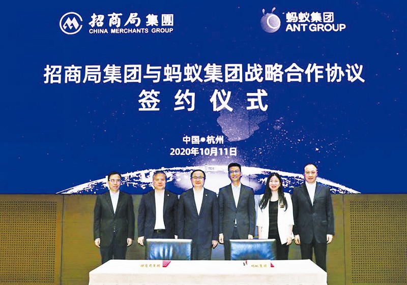 本报讯 10月11日,招商局集团与阿里巴巴、蚂蚁集团在杭州签署全面战略合作协议。根据协议,三方将依托各自在产业、金融和互联网方面的既有布局,共享优势资源,不断推动在产业互联网、金融服务、综合物流、新兴产业及其他业务领域的深度合作,共同推动产业数字化升级,服务实体经济。