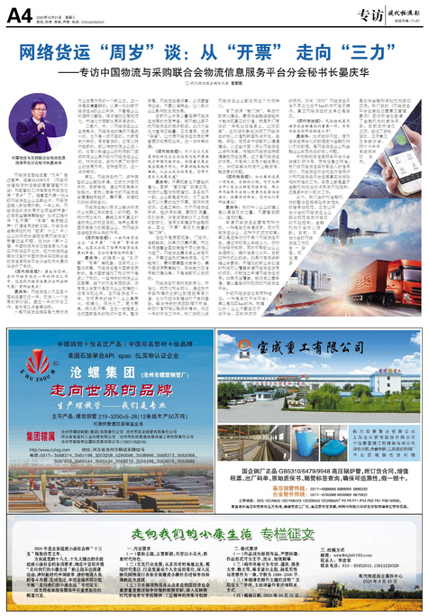 □现代物流报全媒体记者 曹朝霞 图:中国物流与采购联合会物流信息服务平台分会秘书长晏庆华 ...